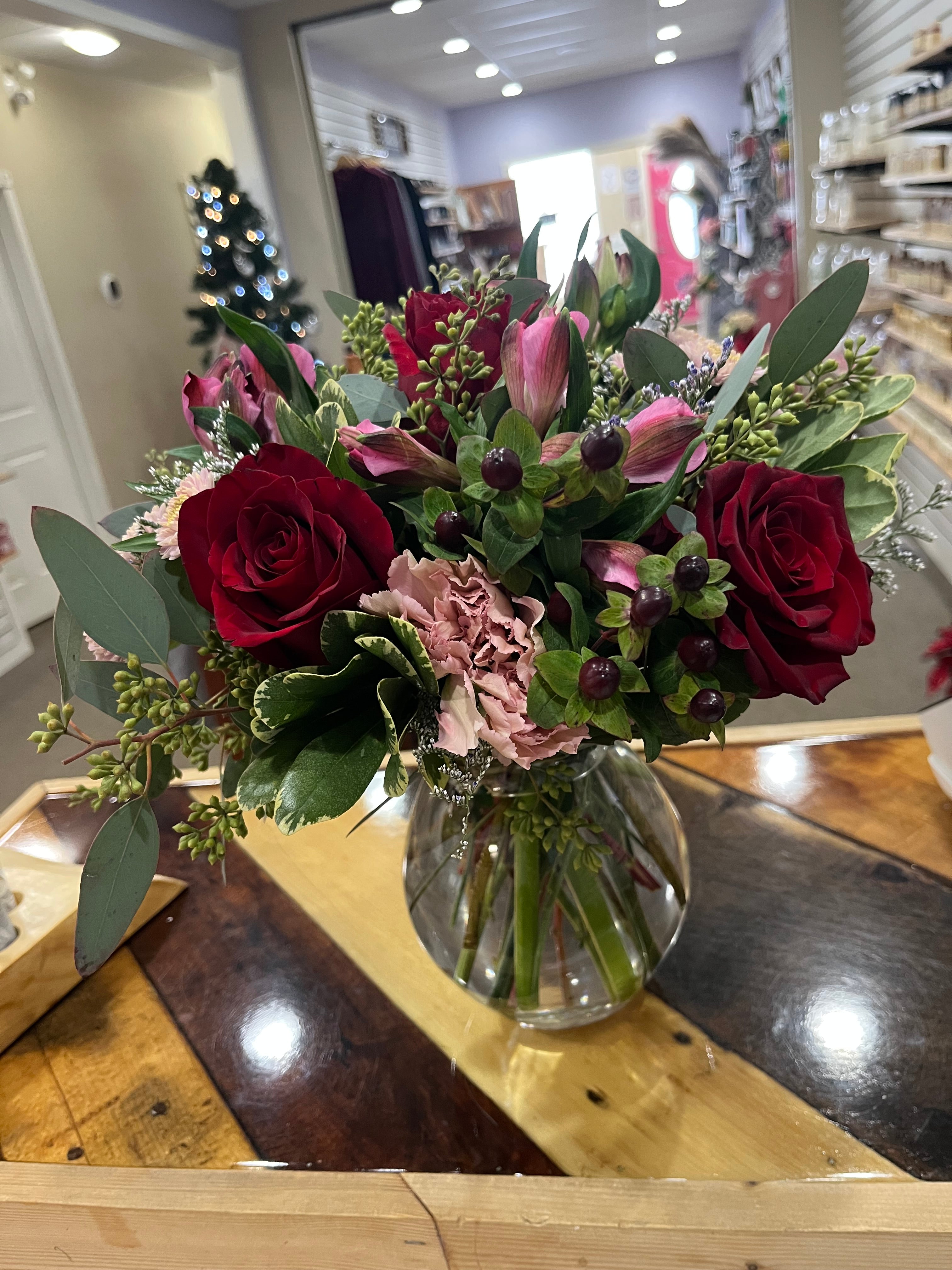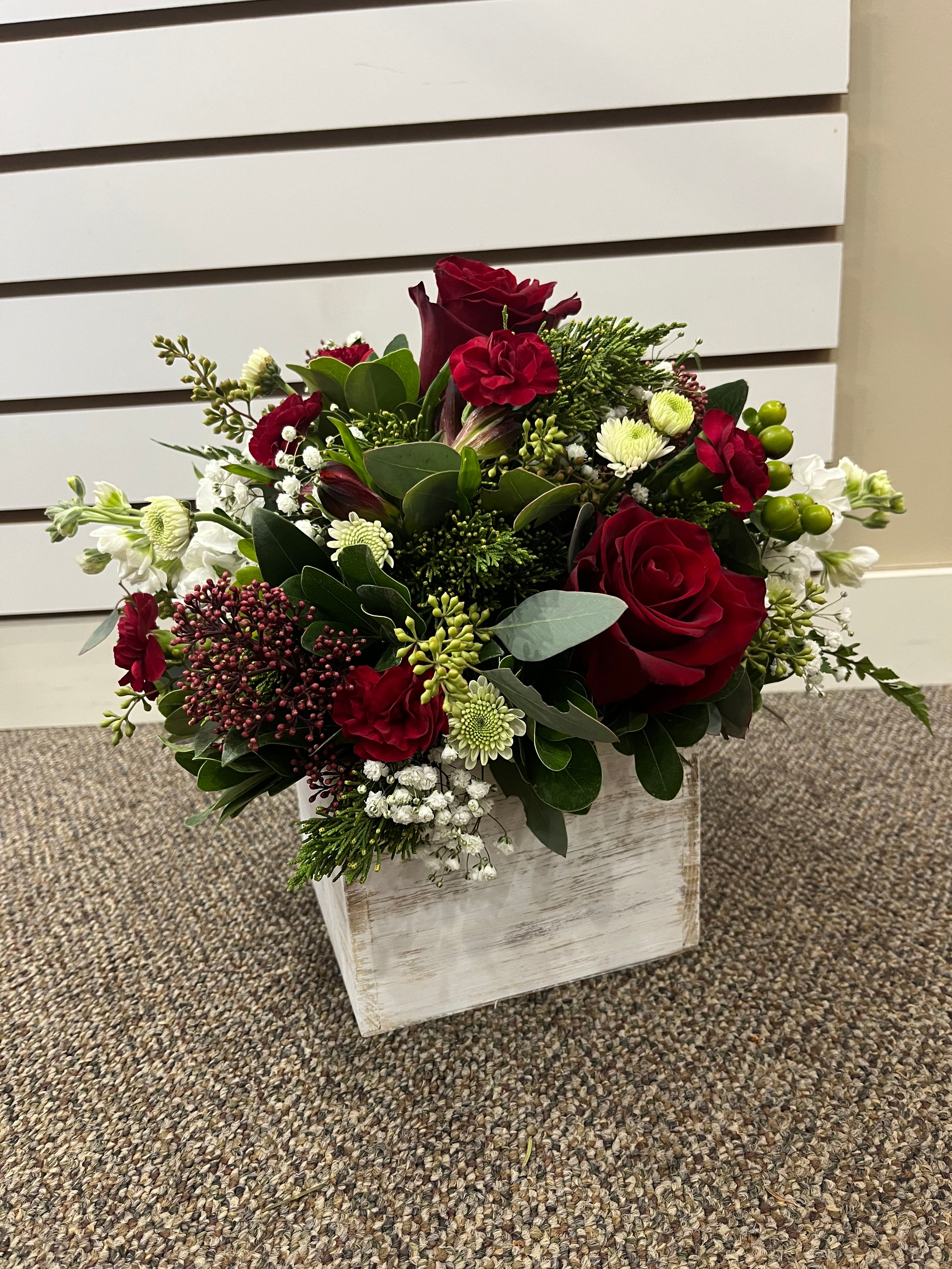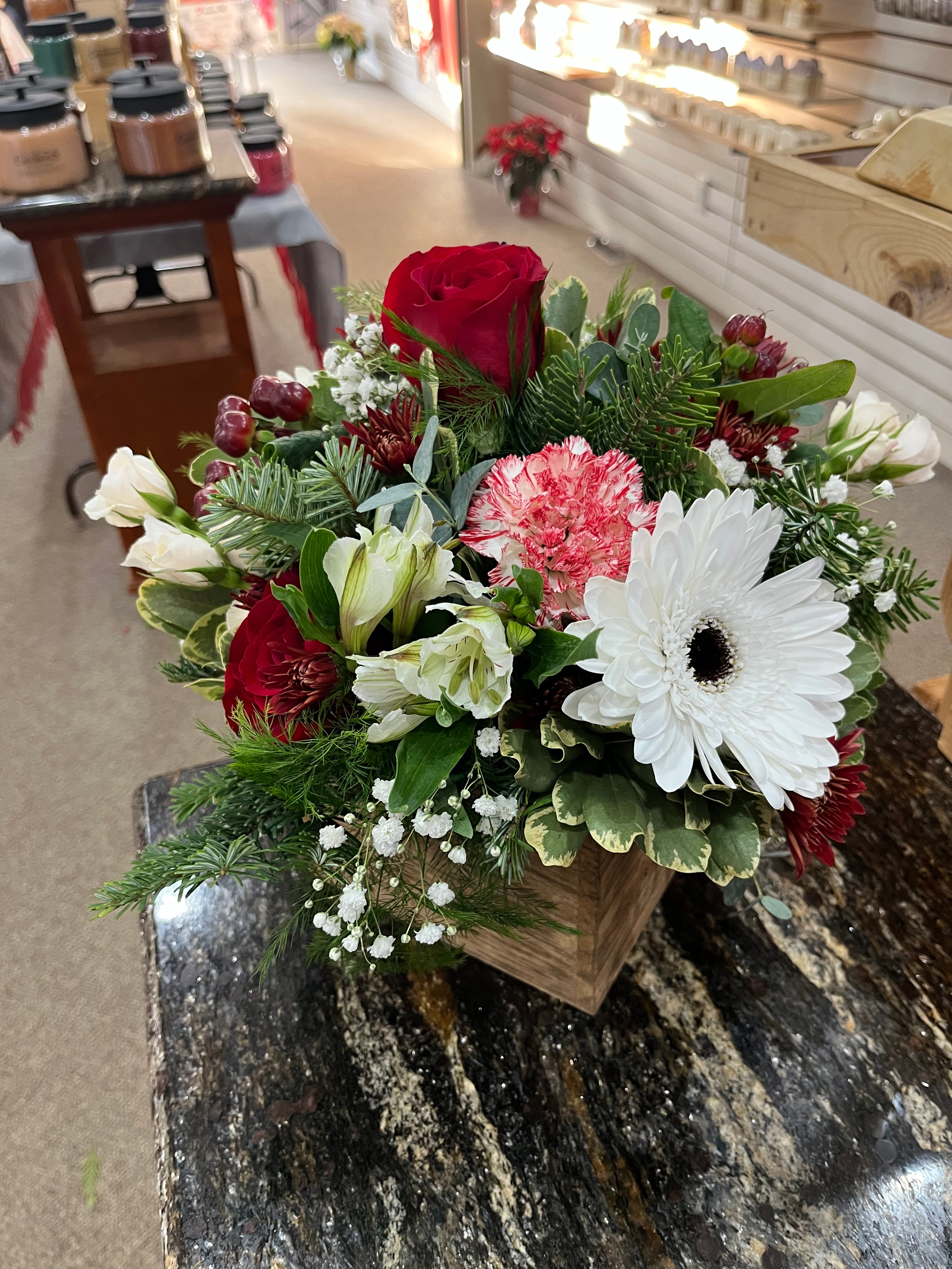 Filled with Christmas cheer! Comes in seasonal florals & greenery.