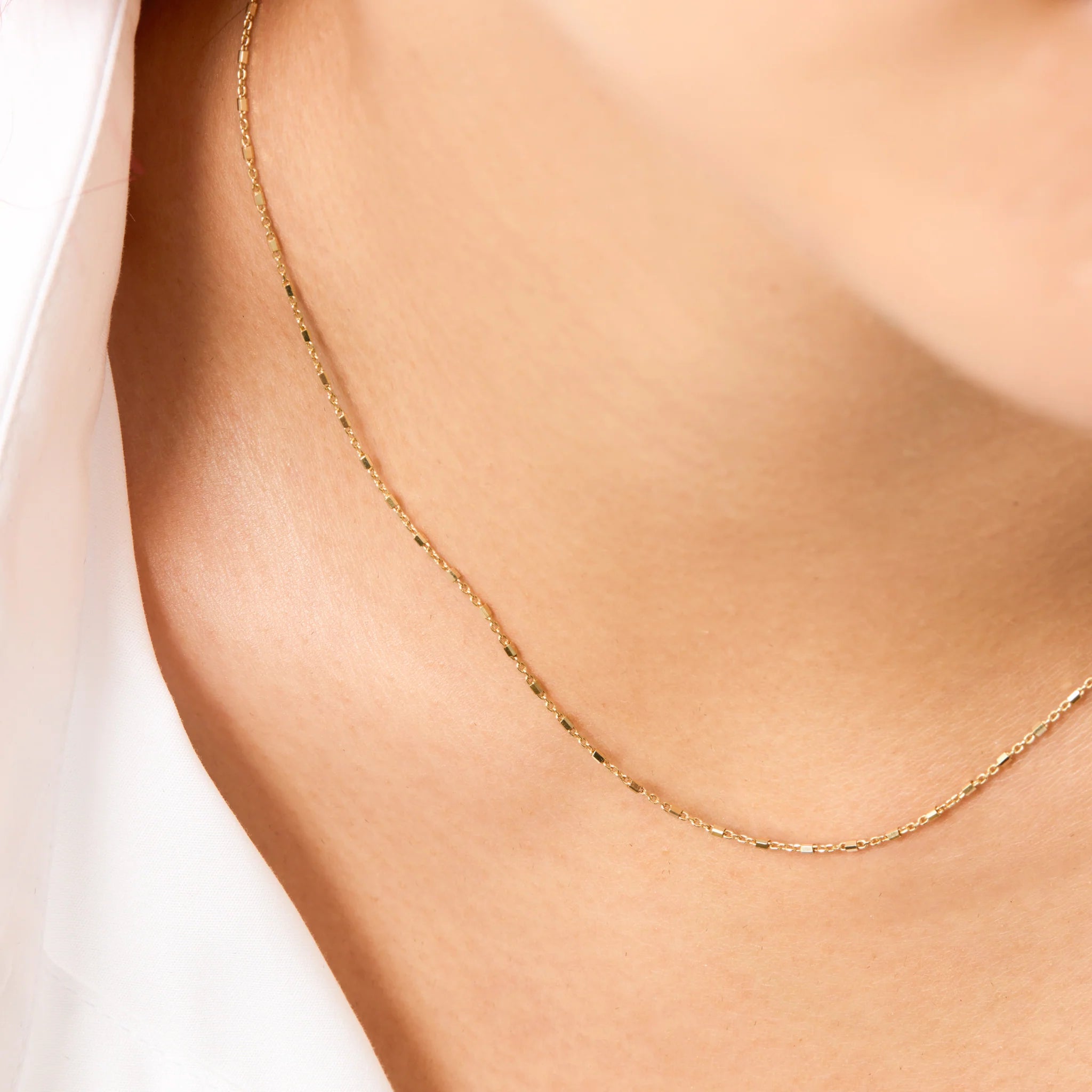 A delicate chain with faceted details that catch the light just right.