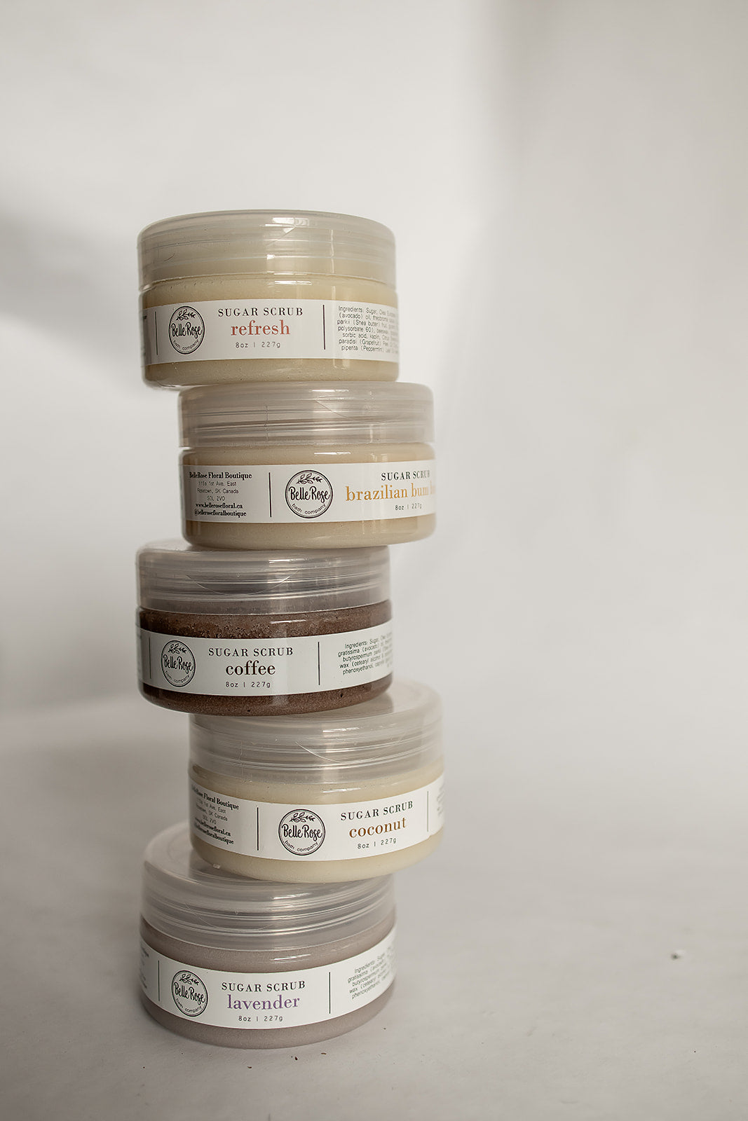 Sugar Scrub exfoliates while leaving the skin smoother and more radiant. Also it provides moisture to your skin leaving it the perfect product for our cold, dry winters.